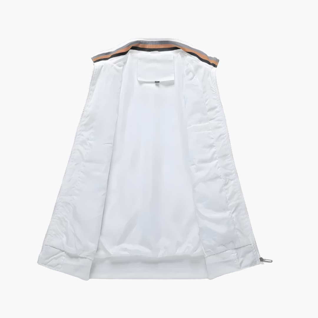 Men’s lightweight jacket with full-zip front and long sleeves. Made from breathable fabric suitable for all-season use. Features include ribbed collar, cuffs and hem, athletic cut, and secure pockets. Designed to be water-resistant, windproof and suitable for casual and active wear.